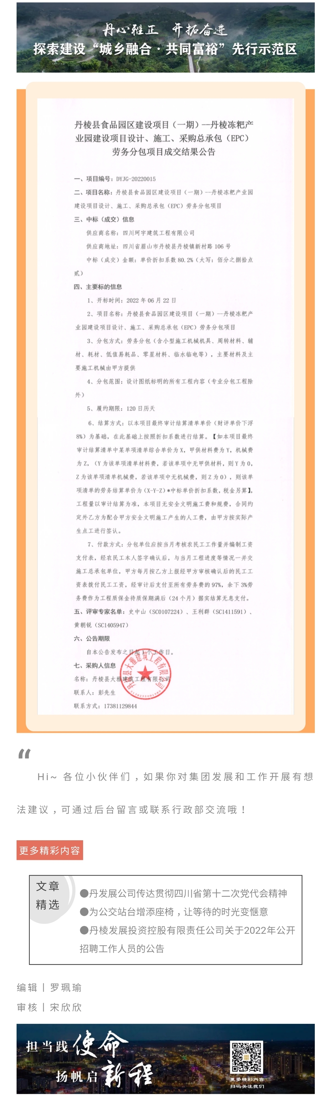 丹棱縣食品園區(qū)建設(shè)項(xiàng)目(一期)--丹棱凍粑產(chǎn)業(yè)園建設(shè)項(xiàng)目設(shè)計(jì)、施工、采購(gòu)總承包(EPC)勞務(wù)分包項(xiàng)目成交結(jié)果公告