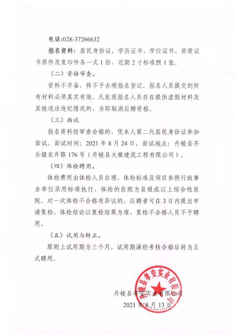 【縣孝安公司】丹棱縣孝安實(shí)業(yè)有限公司關(guān)于公開招聘公司業(yè)務(wù)人員的公告