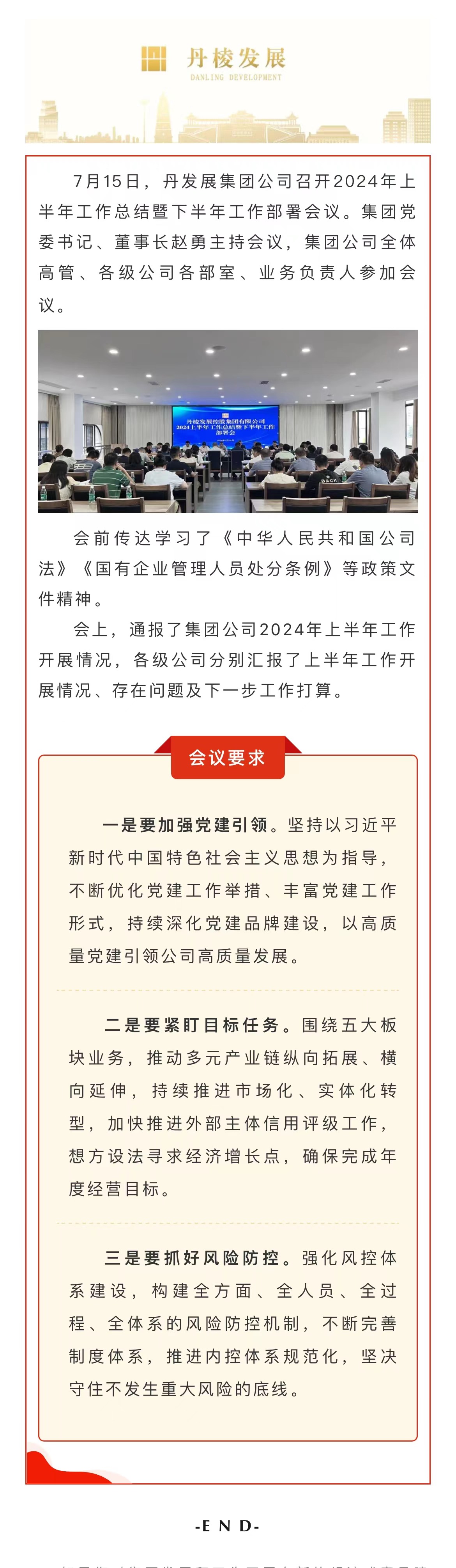 對標(biāo)對表再提升 砥礪奮進(jìn)下半程丨丹發(fā)展集團(tuán)公司召開2024年上半年工作總結(jié)暨下半年工作部署會