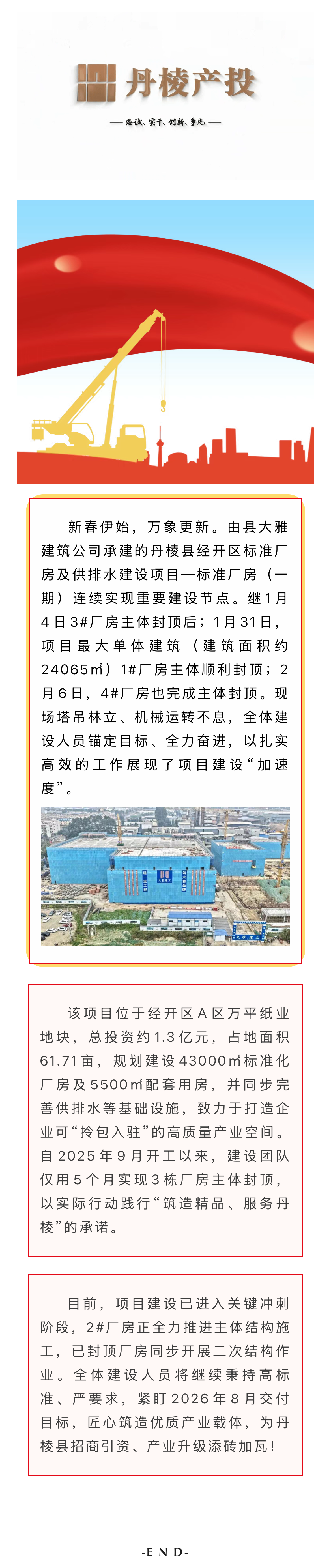 【縣大雅建筑公司】筑跡:丹棱縣經(jīng)開區(qū)標準廠房及供排水建設項目—標準廠房(一期)捷報頻傳,多棟廠房相繼封頂