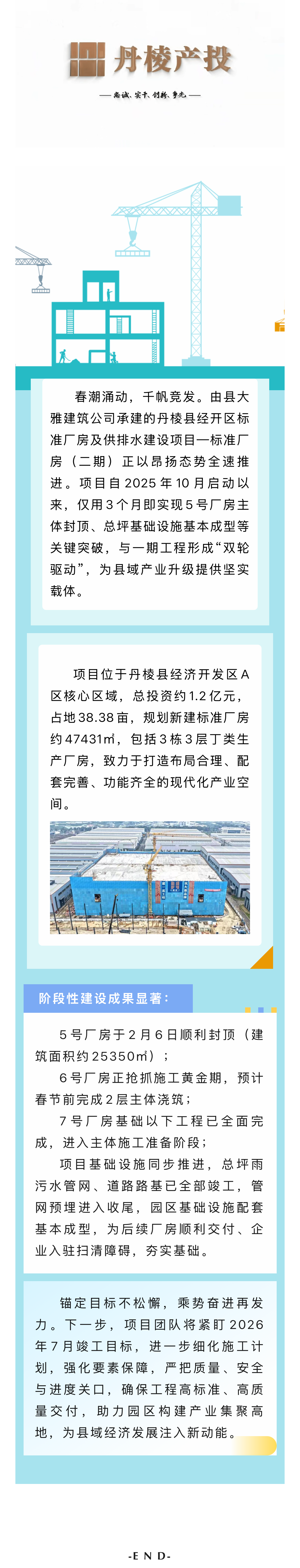 【縣大雅建筑公司】筑跡:乘勢而上再提速 丹棱縣經(jīng)開區(qū)標準廠房及供排水建設項目—標準廠房(二期)全面攻堅​