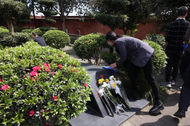 在莊嚴(yán)聳立的革命烈士紀(jì)念碑前,全體人員整齊列隊(duì)、神情肅穆,向革命先烈默哀致禮并敬獻(xiàn)鮮花。隨后,通過重溫入黨誓詞、擦拭烈士墓碑、學(xué)習(xí)先烈事跡等形式表達(dá)對英烈的深切緬懷和崇敬之情。