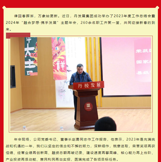 融合夢想·攜手發(fā)展︱丹發(fā)展集團(tuán)舉辦2023年度工作總結(jié)會(huì)暨2024主題年會(huì)